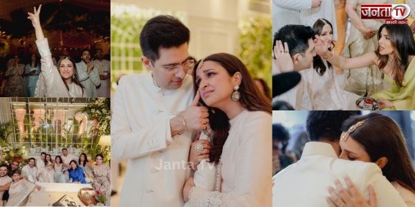 बॉलीवुड एक्ट्रेस परिणीति चोपड़ा और आम आदमी पार्टी के सांसद राघव चड्ढा ने 13 मई को दिल्ली में कपूरथला हाउस में सगाई की थी। वहीं, 'इश्कजादे' एक्ट्रेस ने सगाई कि कई अनदेखी तस्वीरें शेयर की हैं, जिसमें एक्ट्रेस के माता-पिता के अलावा खुद परिणीति चोपड़ा भी फफक-फफक कर रोते हुए नजर आईं। वहीं, प्रियंका चोपड़ा अपने बहनोई को तिलक करते हुए नजर आईं।
