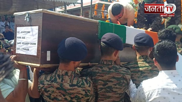 Subedar Kuldeep Chand : जम्मू के अखनूर में आतंकियों से हुए मुठभेड़ में शहीद हुए जवान कुलदीप चंद का पार्थिव शरीर उनके पैतृक गाँव पंहुचा। जहां उनके अंतिम यात्रा में लोगों की भीड़ उमड़ पड़ी। सैंकड़ो लोग उनपर फूलों की वर्षा करते नजर आए। इस दौरान उनके सम्मान में तिरंगा यात्रा भी निकाली गयी। साथ ही सेना के अधिकारीयों ने सैन्य सम्मान के साथ उन्हें सलामी दी। बता दें की जवान कुलदीप महज दो महीने पहले अपनी छुट्टी काटकर ड्यूटी पर लौटे थे।