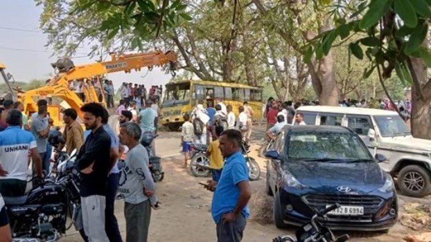 यह बस जीएल पब्लिक स्कूल की है। हादसे की खबर पाते ही बच्चों के परिजन घटनास्थल की ओर दौड़ पड़े। कुछ परिजन अस्पतालों की ओर भागे। हादसे की सूचना पाते ही प्रशासन के आला अधिकारी भी मौके पर पहुंच रहे हैं। घटनास्थल पर मौजूद लोगों का आरोप है कि बस चालक की लापरवाही के कारण यह हादसा हुआ है। बहरहाल, अभी तक इस घटना पर स्कूल प्रबंधन की प्रतिक्रिया सामने नहीं आई है।
