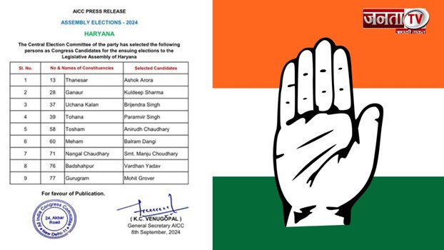 लिस्ट के अनुसार, कांग्रेस ने उचाना कलां से बृजेंद्र सिंह और गुरुग्राम से मोहित ग्रोवर को मैदान में उतारा है। इसके अलावा पार्टी ने थानेसर से अशोक अरोड़ा, गन्नौर से कुलदीप शर्मा, टोहाना से परमवीर सिंह, तोशाम से अनिरुद्ध चौधरी, महम से बलराम दांगी, नांगल चौधरी से मंजू चौधरी और बादशाहपुर से वर्धन यादव को मैदान में उतारा है।