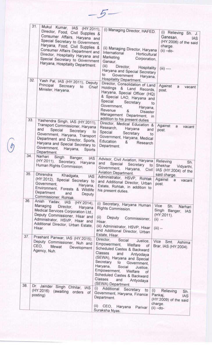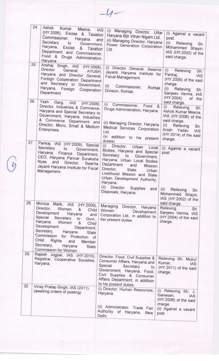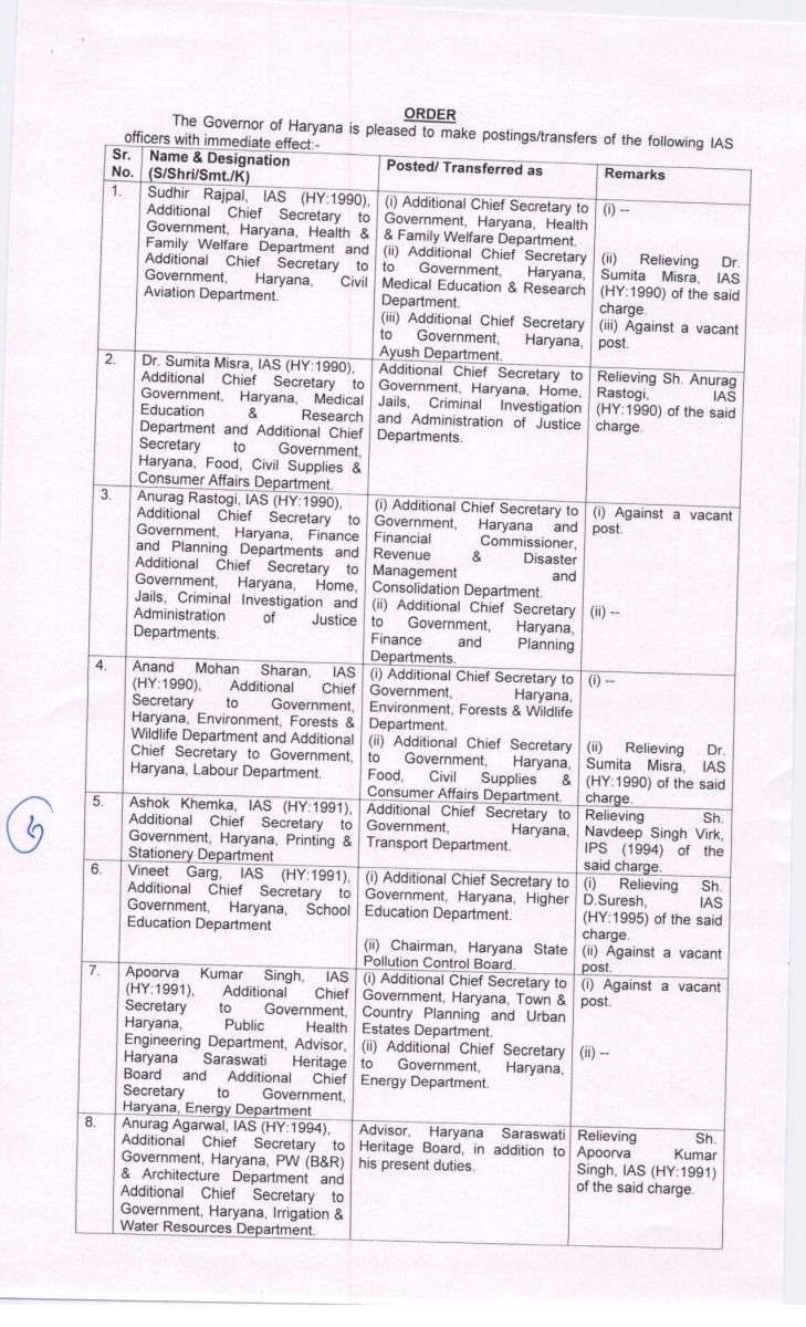 - विनीत गर्ग को उच्चतर शिक्षा विभाग और हरियाणा राज्य प्रदूषण नियंत्रण बोर्ड का अध्यक्ष बनाया गया।