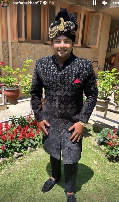 शादी के लिए सरफराज ने ब्लैक कलर की ग्लिटरी शेरवानी पहनी थी, जिस पर सिल्वर एम्बेलिश्मेंट थी। उन्होंने अपने लुक को मैचिंग पगड़ी से पूरा किया था। दूसरी ओर, उनकी दुल्हन रोमाना ने हैवी कढ़ाई वाला रेड लहंगा चुना था और इसे गोल्डन ज्वेलरी के साथ जोड़ा था। दुल्हन ने फुल स्लीव्स का ब्लाउज पहना था और कंट्रास्टिंग दुपट्टे से सिर पर घूंघट डाला हुआ था। इंटरनेट पर वायरल हो रहे एक वीडियो में सरफराज को रोमाना की उंगली में अंगूठी पहनाते और उनके माथे पर किस करते हुए देखा जा सकता है।