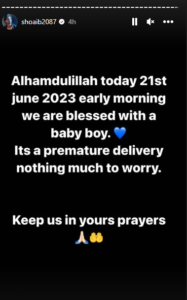 बता दें कि डॉक्टर्स ने दीपिका को जुलाई के तीसरे या चौथे हफ्ते की तारीख दी थी। दीपिका ने अपने व्लॉग में इस बात की जानकारी दी थी। अब दीपिका ने प्रीमैच्योर डिलीवरी से बेटे को जन्म दिया है। शोएब ने मंगलवार को अपने इंस्टा पोस्ट पर जन्मदिन के केक की तस्वीर के साथ लिखा, 'यह पापा टू बी है और इंशाअल्लाह मैं जल्द ही अपने जीवन के एक नए चरण में प्रवेश करूंगा। मैं और अधिक इंतजार नहीं कर सकता हूं। आपकी शुभकामनाओं और प्यार के लिए धन्यवाद।'