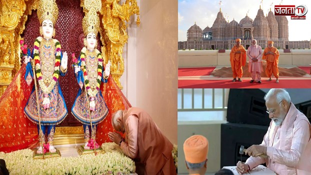 UAE के पहले हिंदू मंदिर का उद्घाटन:PM मोदी ने मंदिर के पत्थर पर छेनी-हथौड़े से लिखा वसुधैव कुटुंबकम दुनिया