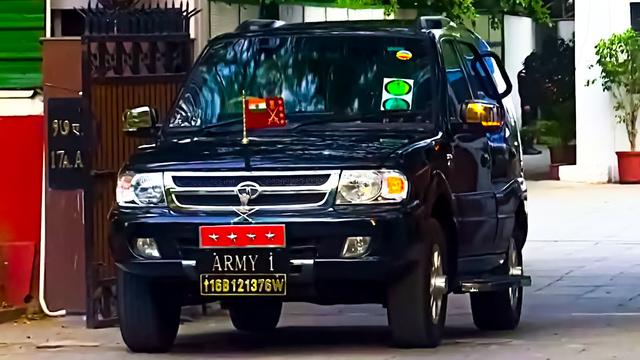 इस तरह की नंबर प्लेट सिर्फ सेना से जुड़े वाहनों में प्रयोग किए जाते है। रक्षा से जुड़े वाहनों की नंबर प्लेट पर तीर का निशान ऊपर की ओर इशारा करते हुए होता है। ऐसी नंबर प्लेट वाले वाहनों को टोल पर पेमेंट नहीं देना होता।
