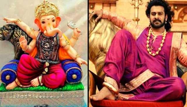 32. बप्पा बने बाहुबली - बाहुबली मूवी में शिवलिंग कांधे पर उठाने वाले सीन से इंस्पायर होकर मूर्तीकारों ने (बाहुबली गणेशा) की प्रतिमा तैयार की है।